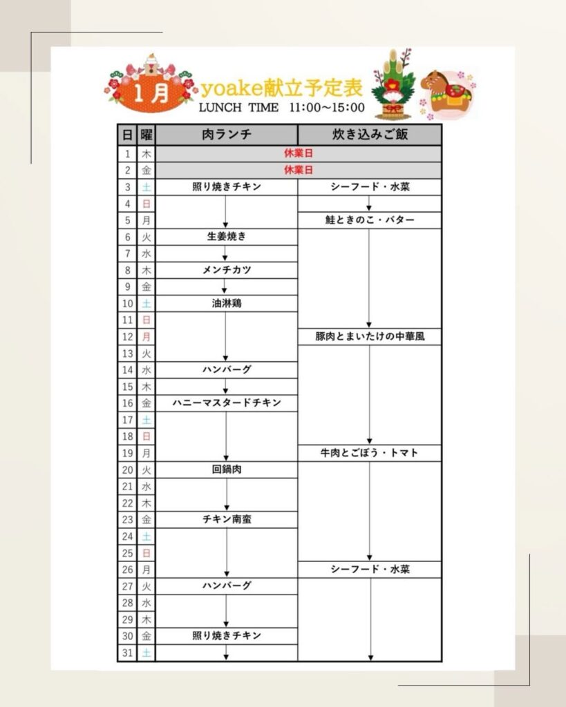 2026年1月の献立のお知らせです。